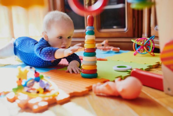 spelen en uitproberen met peuterspeelgoed.